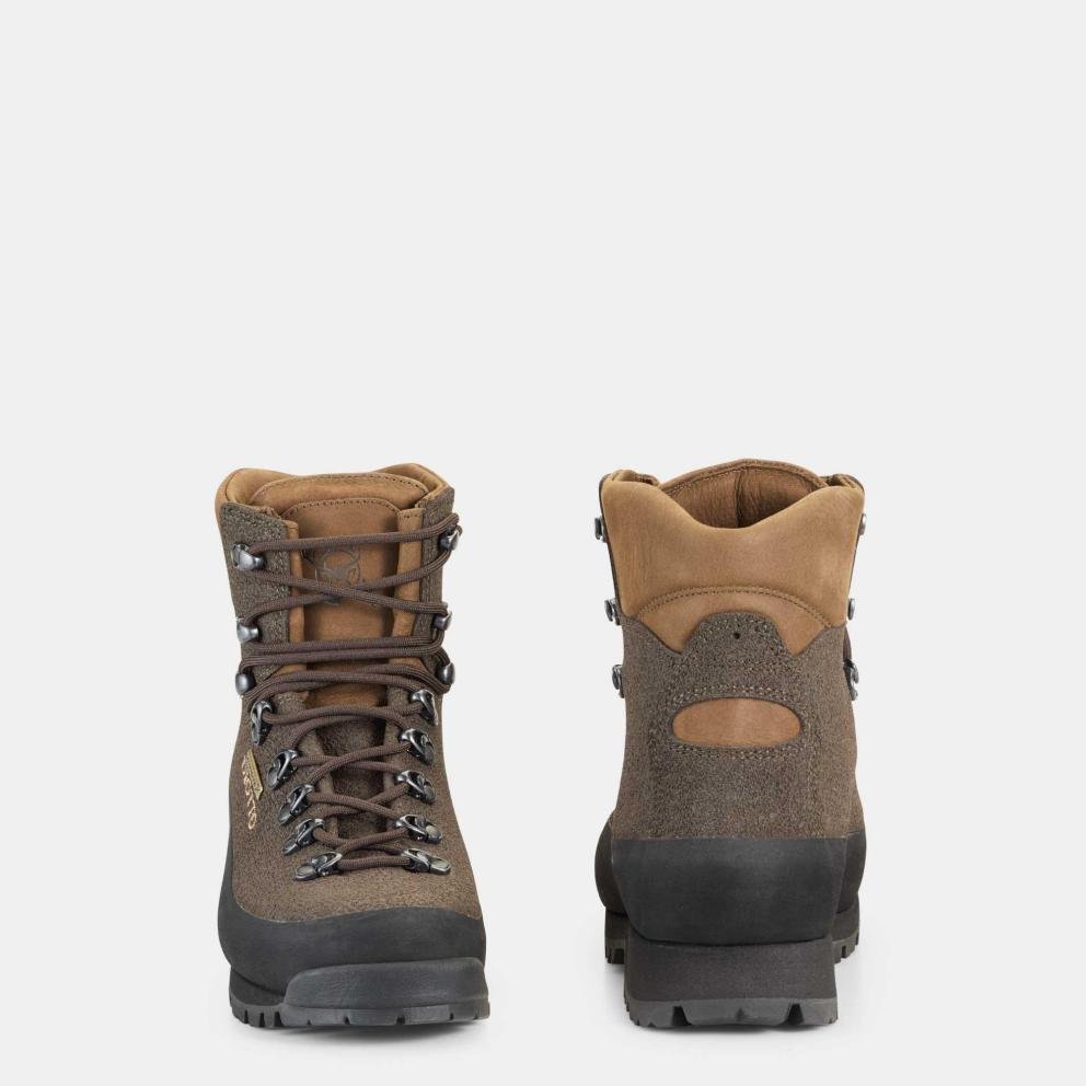 Scarpone realizzato in pelle naturale idrorepellente ad un unico pezzo con trattamento al poliuretano che le dona un effetto poroso proteggendo la calzatura da rovi e pietre.